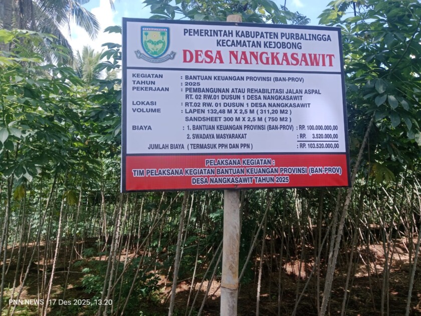 PURBALINGGA | PNN NEWS- kepala Desa Nangka Sawit kecamatan Kejobong Kabupaten Purbalingga, monitoring langsung di tempat pelaksanaan rehabilitasi pengaspalan jalan Desa, di wilayah RT 02 RW 01 Dusun 1. Bersumber dari Bantuan keuangan Provinsi (Banprov) Tahun 2025.
