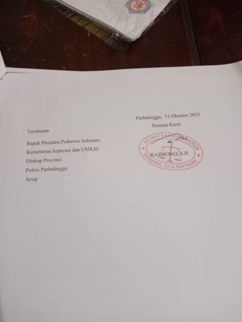 PURBALINGGA | PNN NEWS –10/10/2025- Kuasa hukum sejumlah anggota koperasi mengadukan nasib kliennya ke Kementerian Koperasi dan UKM serta Presiden Republik Indonesia, menyusul maraknya praktik rentenir berkedok koperasi yang merugikan masyarakat kecil. Fenomena ini dinilai sangat meresahkan dan membutuhkan penanganan cepat dari instansi terkait agar kesejahteraan serta keamanan ekonomi masyarakat dapat terlindungi.