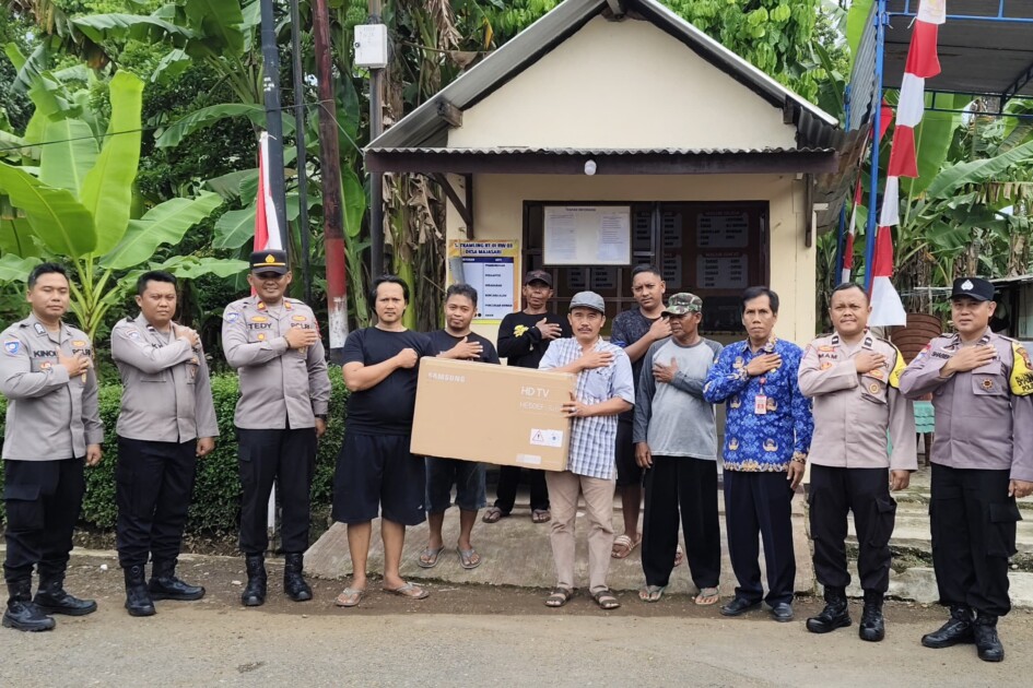 Bantuan diserahkan secara simbolis oleh Kasat Binmas Polres Purbalingga AKP Tedy Subiyarsono kepada awak Pos Satkamling, Rabu (1/10/2025). Bantuan televisi diserahkan untuk Pos Satkamling RT 2 RW 1 Desa Toyareja, Kecamatan Purbalingga dan RT 3 RW 1 Desa Majasari, Kecamatan Bukateja.