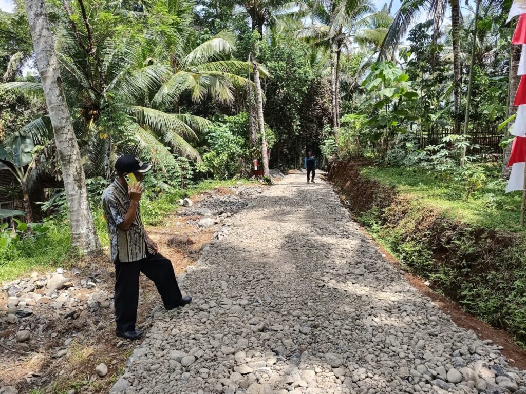Aspirasi tersebut adalah bentuk nyata pembangunan jalan aspal, yang sebelumnya jalan tersebut merupakan jalan tanah,Proses penggarapan pembangunan jalan tersebut, dengan teknik bahan batu besar maupun batu kecil yang seragam dan disusun dalam lapisan-lapisan cembung yang dangkal serta dipadatkan secara menyeluruh.